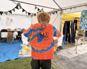 今年は私がブースの装飾を企画から担当させてもらいました。どうやったらお客様の目に留まるのか考え、タイダイ染めの魅力である色鮮やかな装飾にし華やかで活気ある場所を作ることができるよう工夫しました。